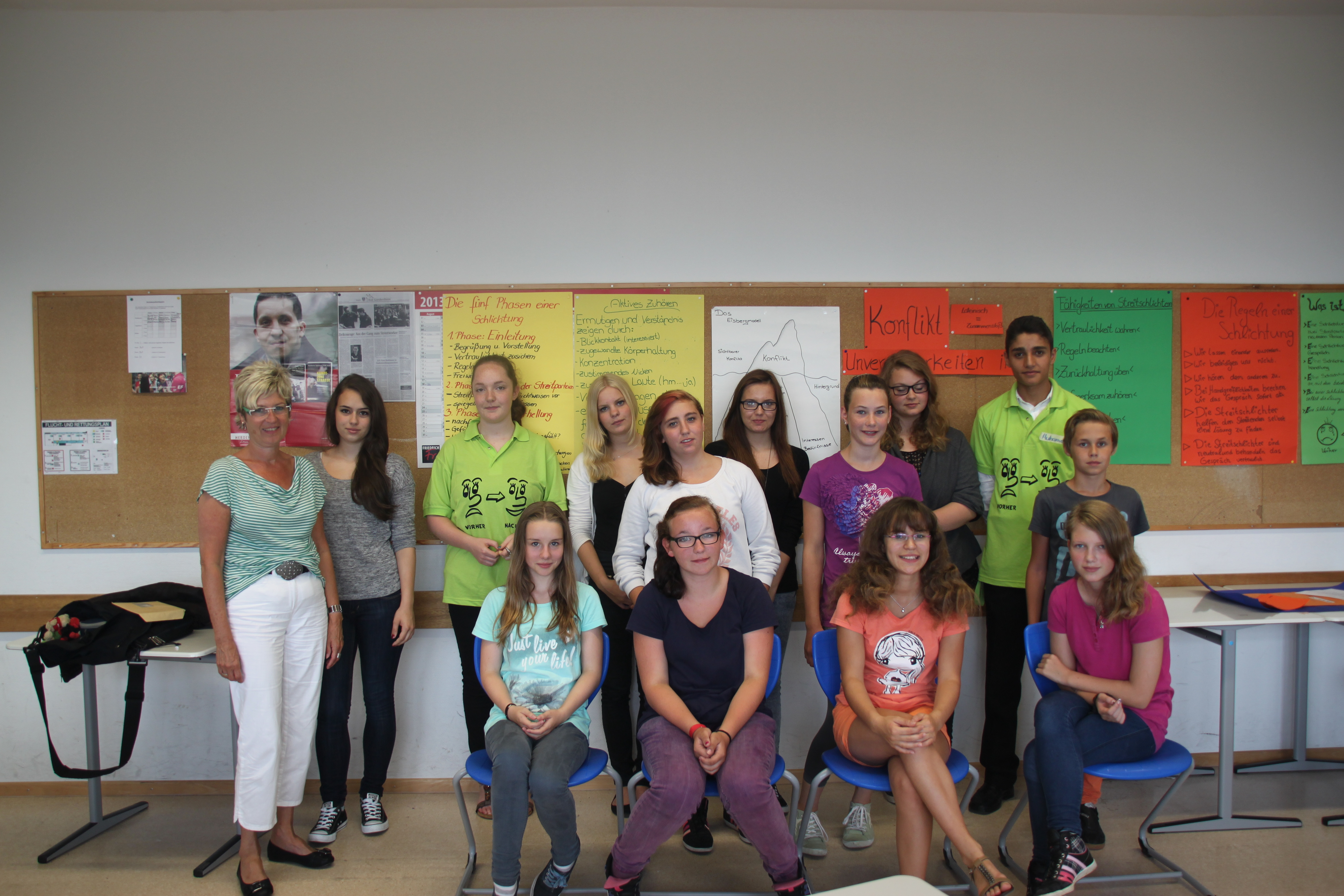 Ihre Aufgabe ist es, nach den Ferien bei kleineren Auseinandersetzungen zwischen den sich streitenden Schülern zu vermitteln. Im Rahmen der Ausbildung lernten sie viel über konstruktives Konfliktverhalten, Gesprächsführung, Körpersprache, aktives Zuhören und darüber, wie man Gefühle am besten erfragt und wie man offene Fragen stellt. Die Ausbildung endete mit einer theoretischen und einer praktischen Prüfung, die die diesjährigen „Auszubildenden" mit Bravour bestanden.