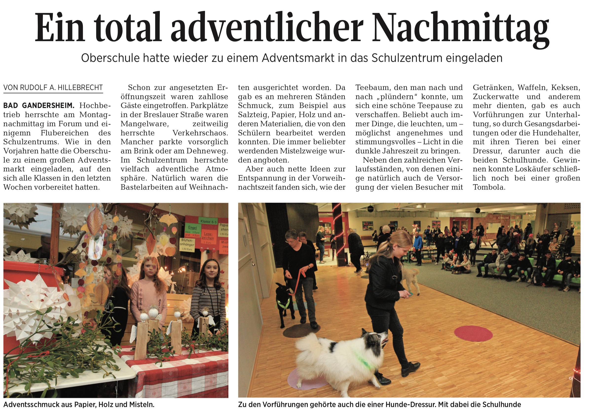 Ein total adventlicher Nachmittag - Ein Bericht über den Oberschul-Adventsmarkt von Rudolf Hillebrecht (Gandersheimer Kreisblatt)